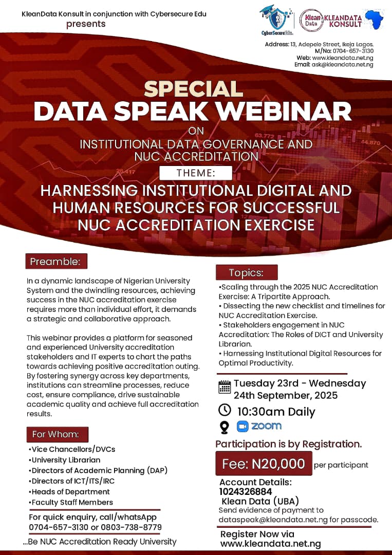Early Bird Registration: N15,000 (On or Before 21st October, 2025)